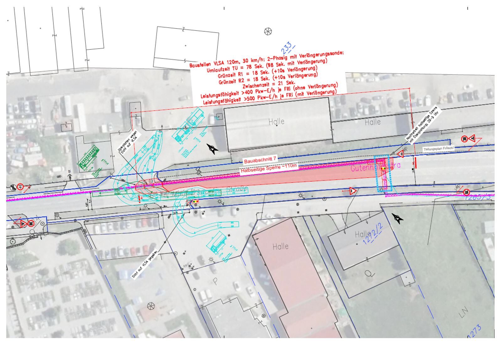 - Halbseitige Straßensperre mit Ampelregelung auf der Gutenhoferstraße