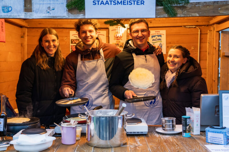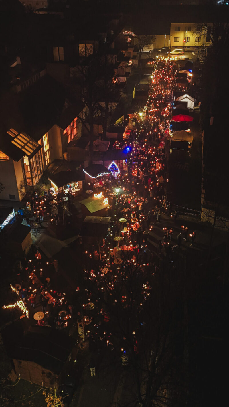 Die Schulallee verwandelte sich für drei Tage in ein stimmungsvolles Adventdorf, in dem zahlreiche Besucherinnen und Besucher gemeinsam die vorweihnachtliche Atmosphäre genossen.