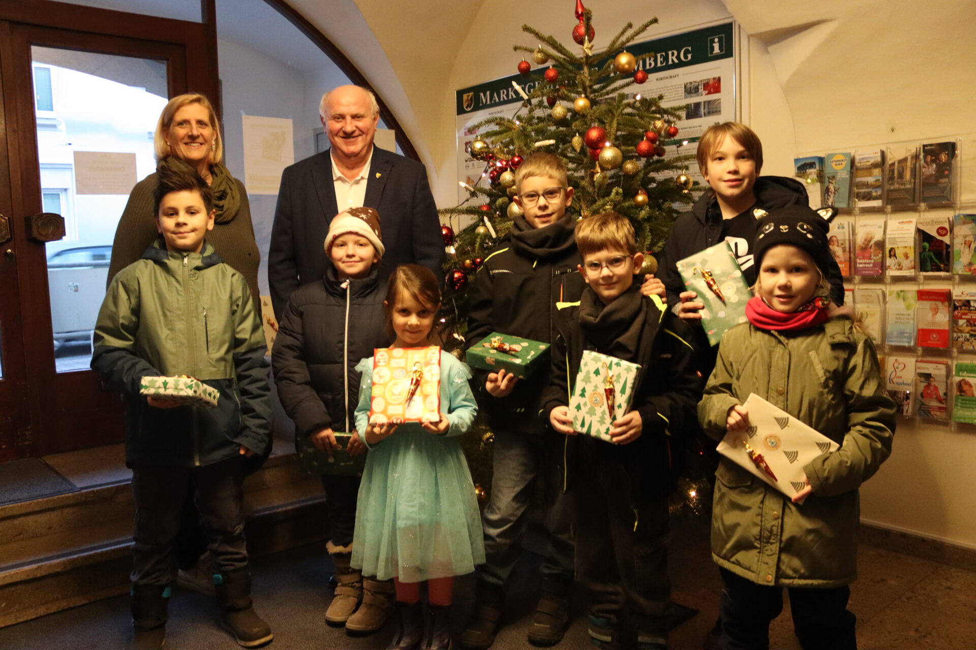24 festlich bemalte Kunstwerke haben uns erreicht. Jedes davon ist absolut einzigartig und mit viel Liebe gestaltet. Als kleines Dankeschön besuchten uns die kleinen TeilnehmerInnen am Gemeindeamt, wo Bürgermeister Ernst Wendl ihnen eine kleine Überraschung überreichte. Alle TeilnehmerInnen, die es heute leider nicht geschafft haben, sich ihr Geschenk abzuholen, können dies zu den Öffnungszeiten ab 07.01.2026 gerne nachholen.
