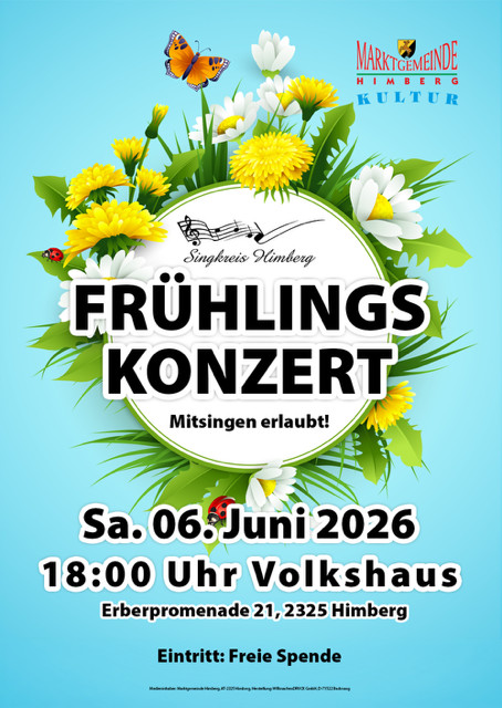 JUNI 2026 Singkreis Sommerkonzert6. Juni 202618:00Volkshaus Himberg MEHR INFO Frühlingskonzert6. Juni 202618:00Volkshaus Himberg MEHR INFO Heimatkundliche Abende9. Juni 202619:00Hotel "Das Himberg" MEHR INFO Sommerfest des Elternvereins der VS Himberg12. Juni 202615:00Kirchenplatz MEHR INFO Erdbeerfest13. Juni 2026Barbaraheim Himberg MEHR INFO