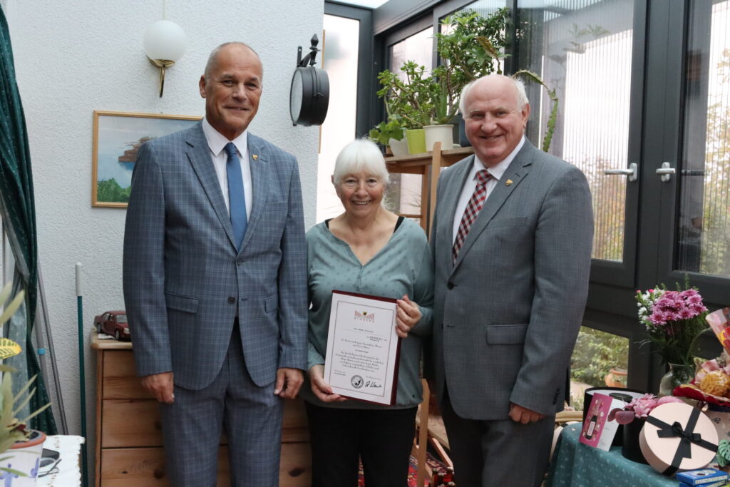 Vor Kurzem feierte Frau Helene Schiegl aus Pellendorf ihren 80. Geburtstag. Es gratulierten herzlich Gemeinderat Walter Jakob und Bürgermeister Ing. Ernst Wendl. (Foto: Marktgemeinde Himberg)